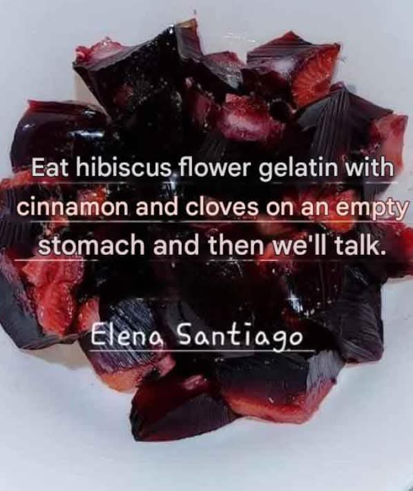 Eat hibiscus flower jelly with cinnamon and clovo on an empty stomach and then we talk about Elena Santiago