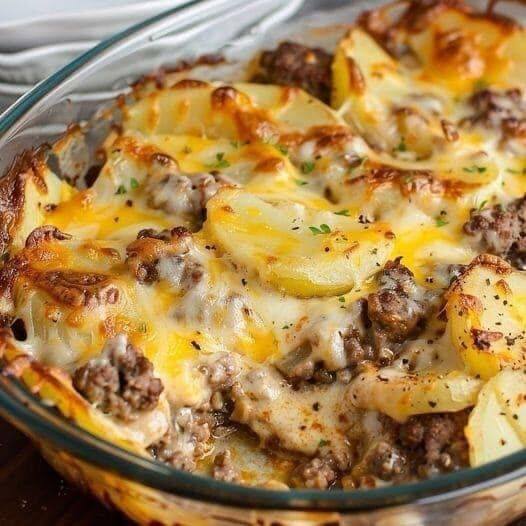 This hearty and comforting one-pan dish is perfect for busy weeknights or cozy weekends. With layers of thinly sliced potatoes, seasoned ground beef and onions, and a creamy cheese sauce smothered in melted cheddar, it’s a crowd-pleaser that delivers big on flavor and ease.