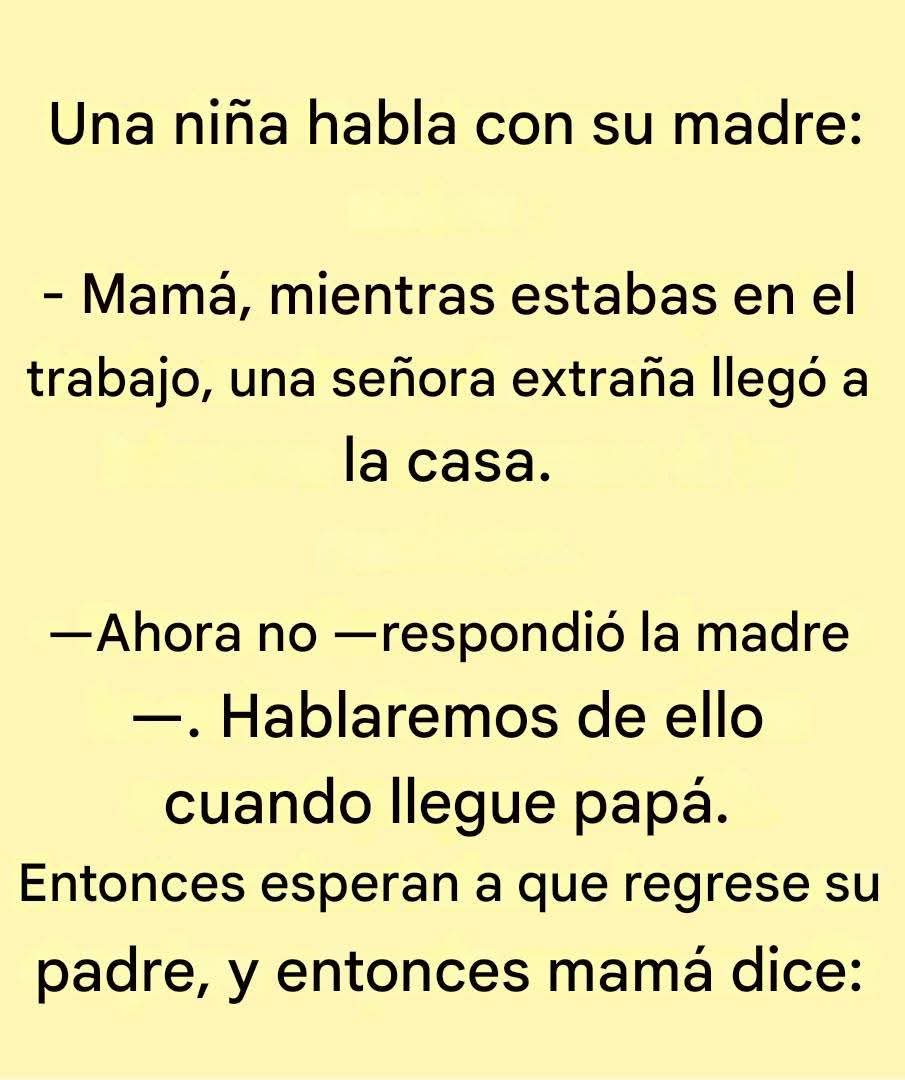 Una niña inocente se sienta a la mesa y, con una sonrisa pícara, pronuncia una frase que romperá la tranquilidad de su familia: «Mamá, mientras estabas trabajando, una señora desconocida llegó a casa». Aunque esta afirmación pueda parecer inofensiva, en realidad esconde mucho más de lo que parece. Mamá, absorta en sus quehaceres, se queda paralizada al instante. ¿Una señora desconocida? Esta mención despierta sospechas, pero mamá prefiere posponer la conversación hasta que llegue papá.