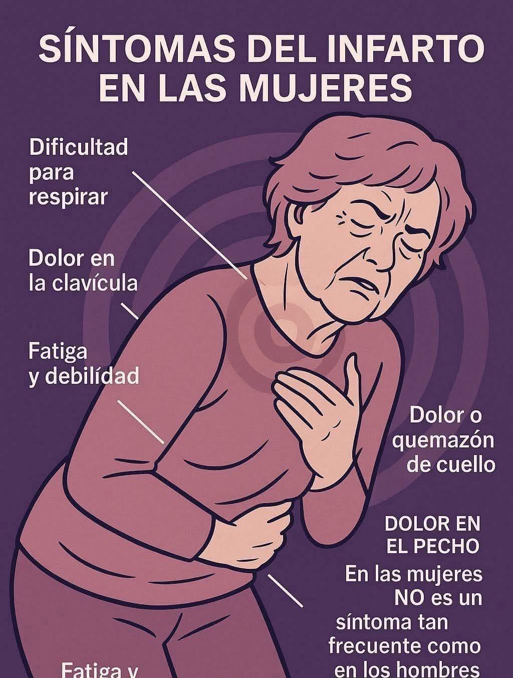 Las mujeres tienden a experimentar síntomas más sutiles o atípicos que los hombres, lo que puede dificultar el diagnóstico temprano de un infarto. Por eso es fundamental estar informadas y actuar de inmediato si se experimentan estos síntomas.